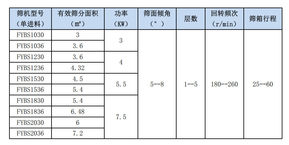 FYBS方形搖擺篩的工作原理為:篩機啟動之后,篩機搖動體即篩箱在慣性力的作用下作前后往復運動,篩箱帶動篩面作周期性搖動,從而使篩面上的物料隨篩箱一同作定向跳躍式運動。期間,小于篩面孔徑的物料通過篩孔落到下層,成為篩下物,大于篩面孔徑的物料經(jīng)連續(xù)翻滾跳躍運動后,從排料口排出,完成篩分工作。